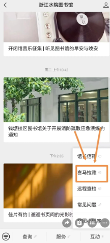 请确认已关注“浙江水院图书馆”微信公众号。点击菜单栏中“互动”——“喜马拉雅”